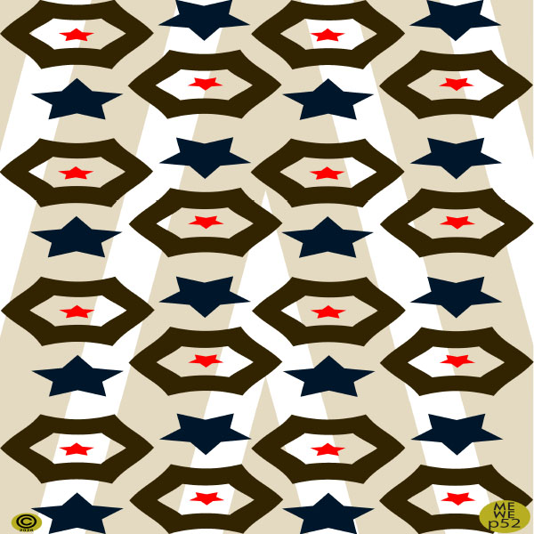 Wild west outback influenced prints of sheriff badge star and navy blue stars on a beige striped background.
