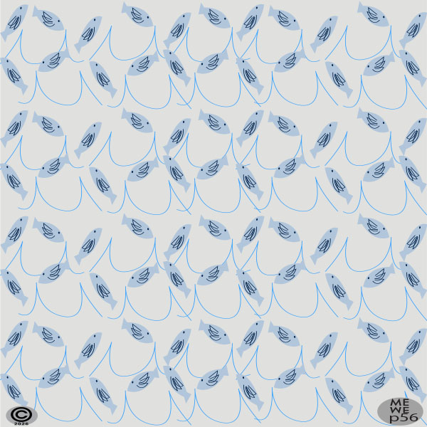A print of blue fish in water